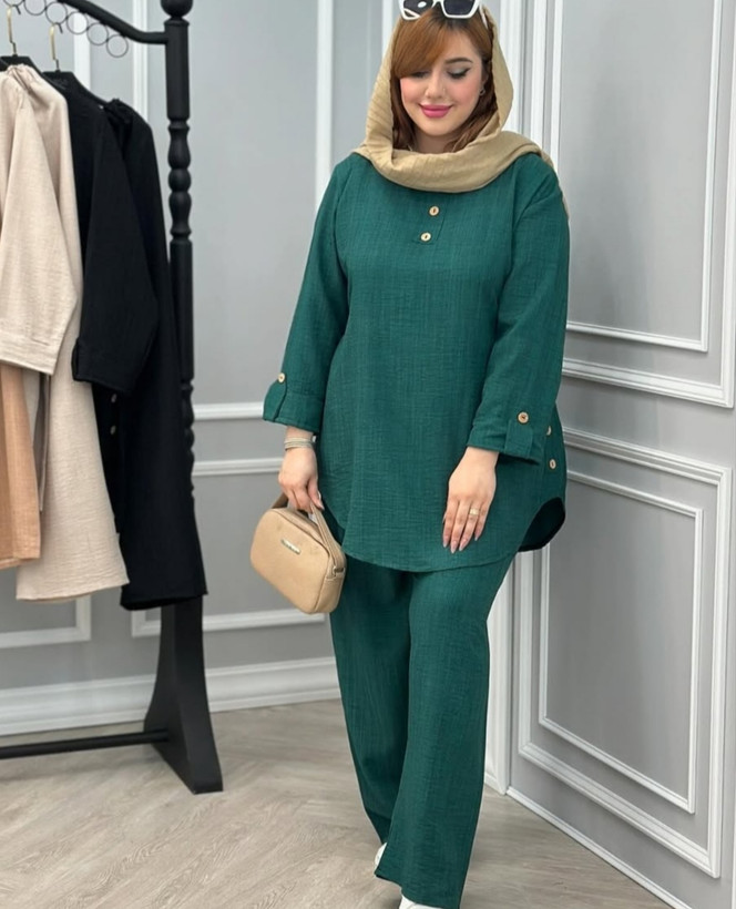 ست تونیک و شلوار زنانه 😍 جنس شانتون مناسب سایز 40تا 54 دارای 10رنگ جذاب و خشکل