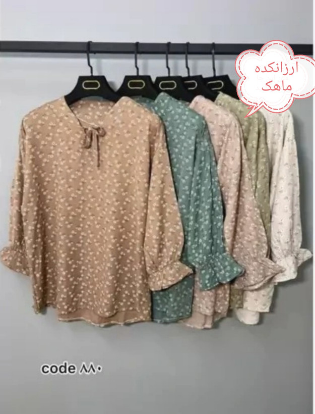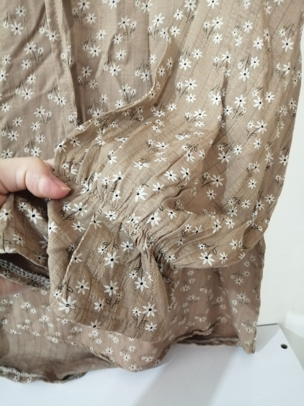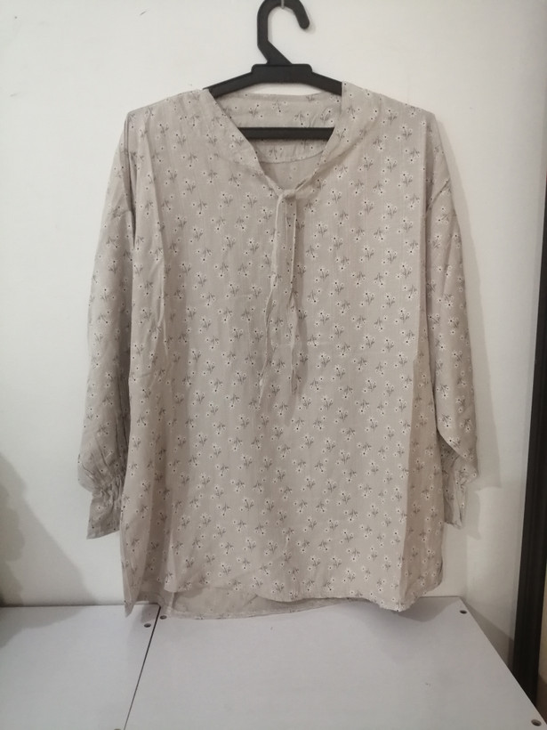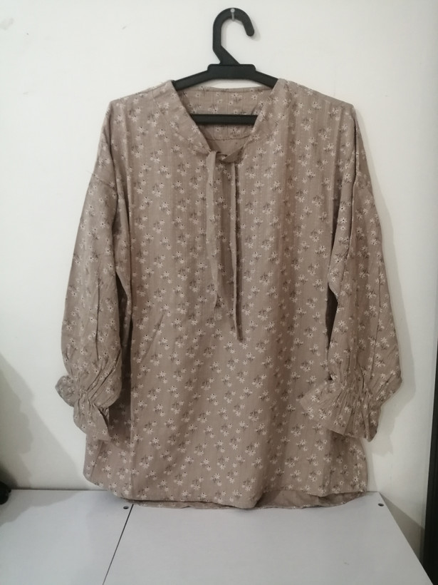 تونیک یقه بندار مدل استین عروسکی جنس کوک دوزی گل گچی