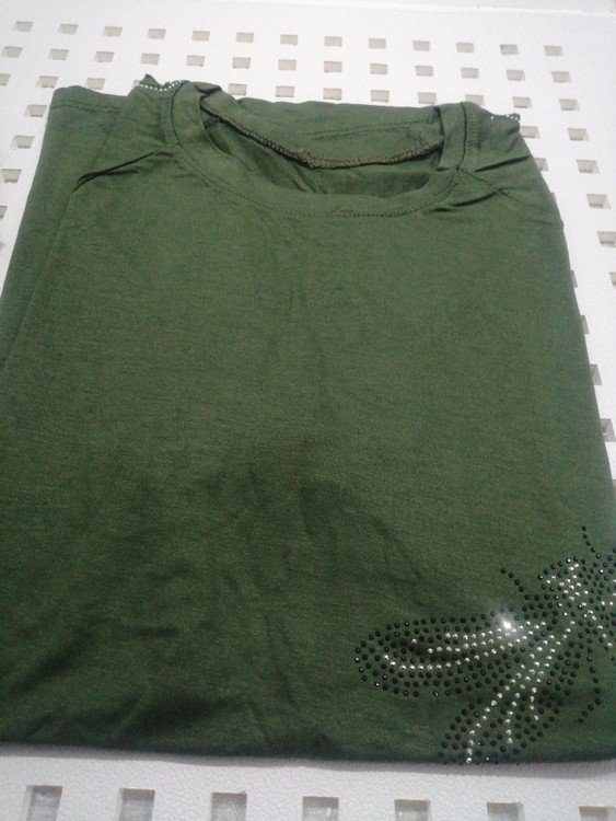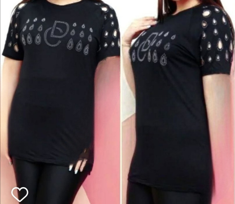 تیشرت زنانه نگینی استین لیزری جنس سوپر نخ پنبه
