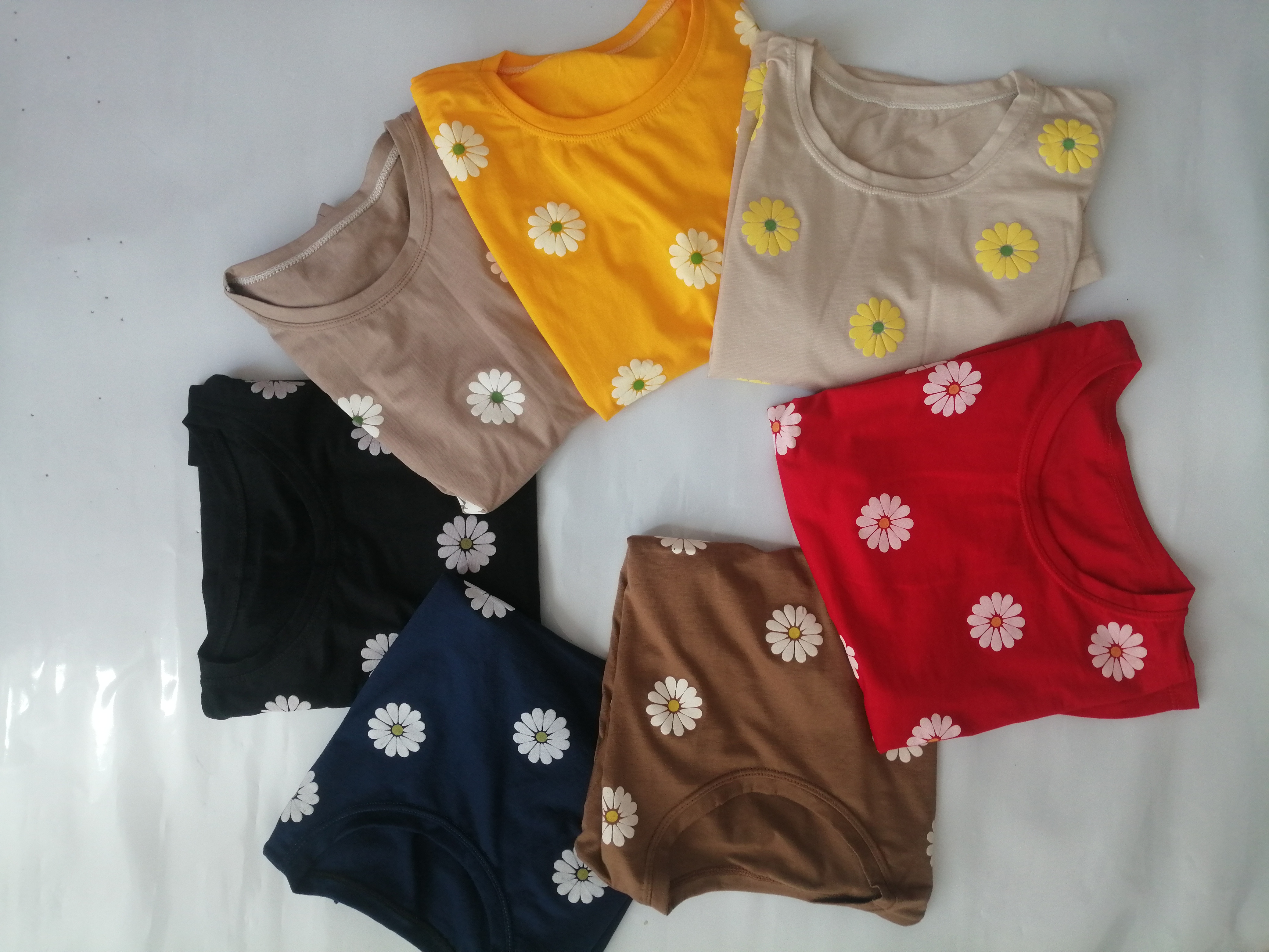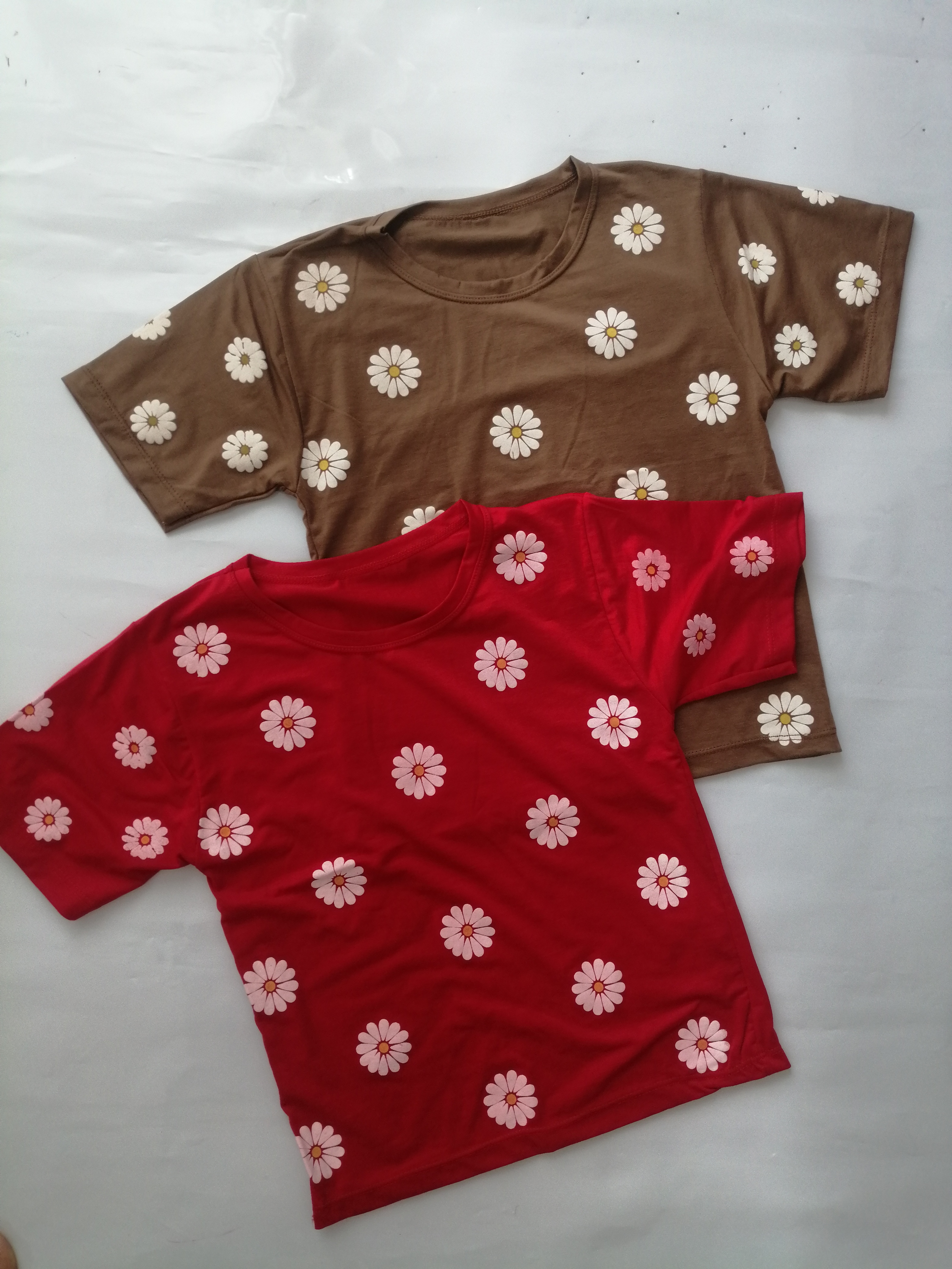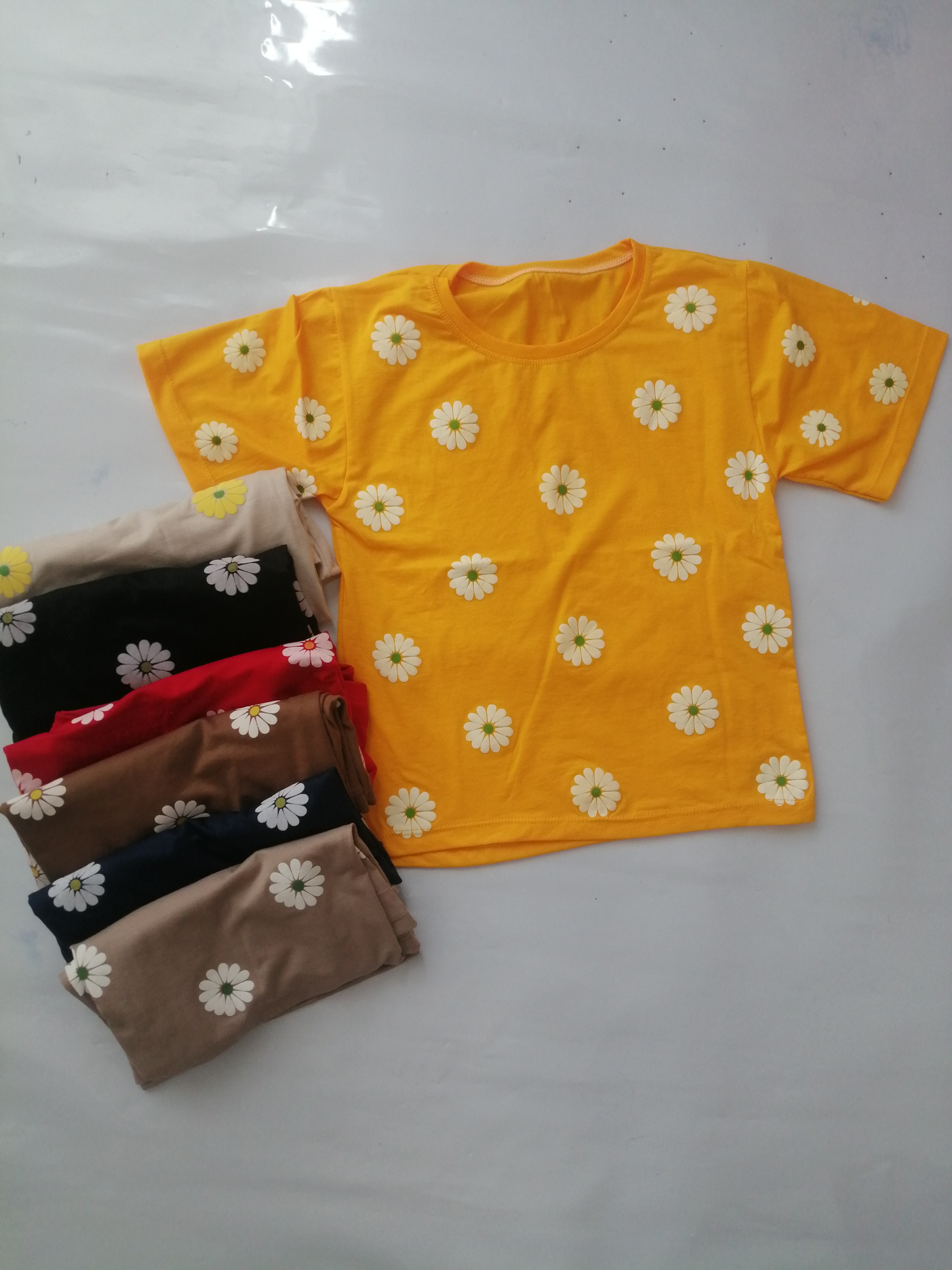 کراپ دخترانه نخی طرح گل سایز34تا42در رنگبندی